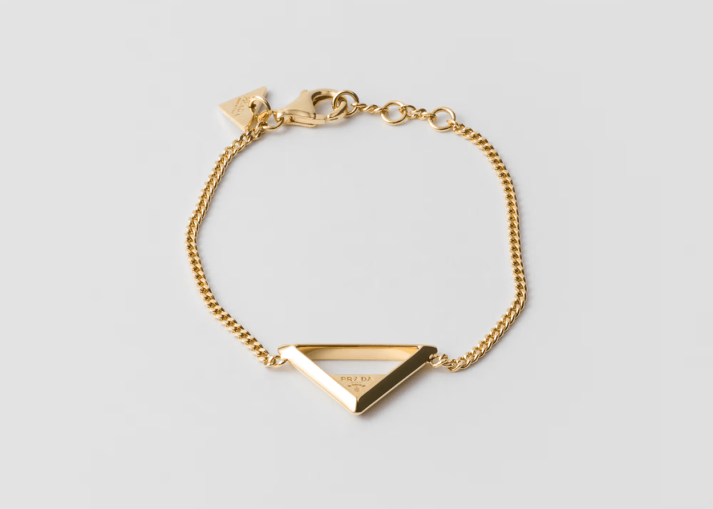 The simple yet elegant geometry of the iconic triangle logo gives shape to this minimalist and refined bracelet (Priced at $575.00).