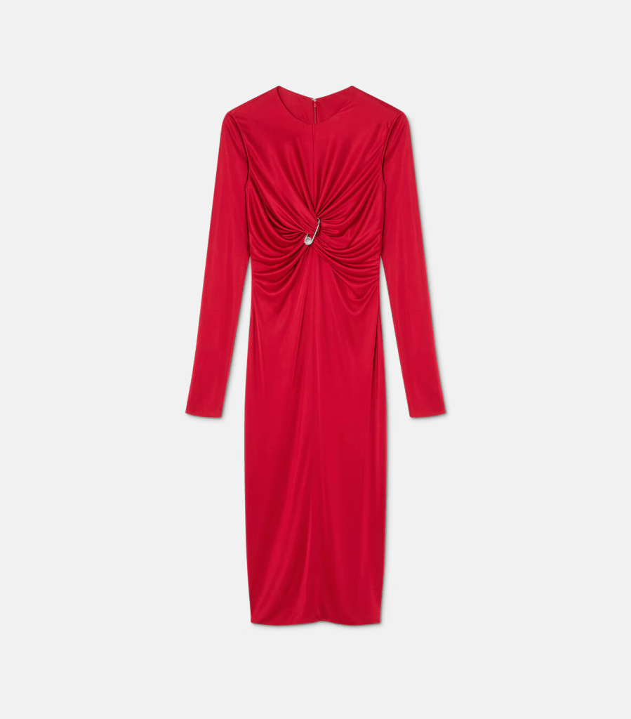 From a ravishingly-red long-sleeved midi dress in liquid jersey (with signature Versace safety pin detailing) to the absolute must-have of a terry-towelling bathrobe – scroll further for 10 of theFashionSpot’s Objects to Desire from the 2024 Versace holiday gift guide: