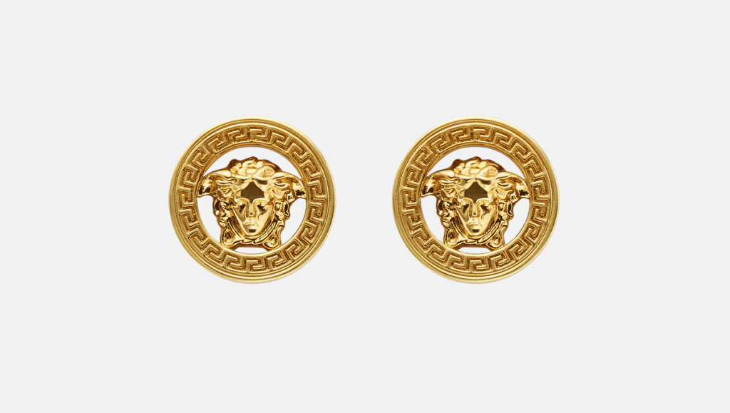 Small stud earrings featuring the signature Medusa ’95 emblem. All Versace jewelry products are lead and nickel-free. All materials are hypoallergenic (Priced at $350.00).